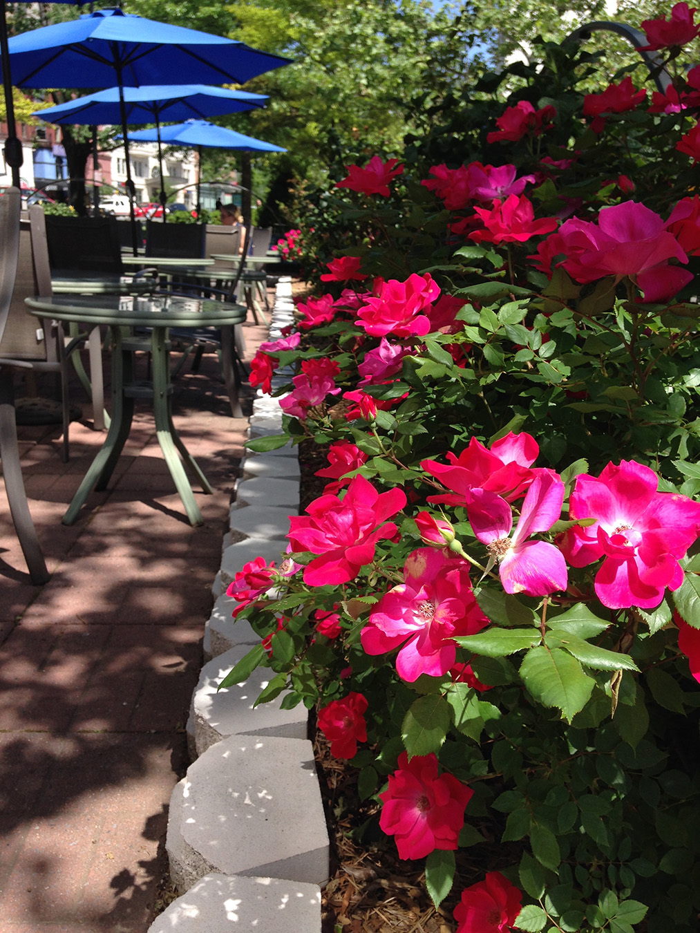 Come and enjoy our rose garden patio that is the perfect atmosphere to enjoy your Italian lunch or Italian dinner. Weather permitting our patio is open from April until October. We have umbrellas that can get you out of the sun and enjoy beautiful spring, summer and falls days in DC. Our patio dining gives you the perfect combination of dining in a city yet being surrounded by beautiful roses and other annual and perennial plants. If you would like to dine on our patio for lunch or dinner please give us a call 202-333-1767 or email laperla@laperla.us.